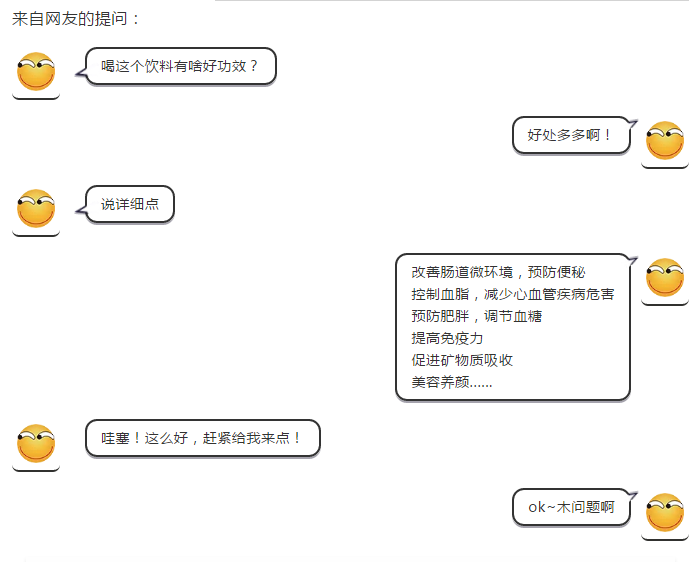 糖尿病患者、高血糖、高血脂、超重、肥胖人群、辦公室久坐者、習(xí)慣性便秘、愛美人士……統(tǒng)統(tǒng)適宜的一款健康飲料,在品嘗美味的同時(shí),還能收獲滿滿的健康。